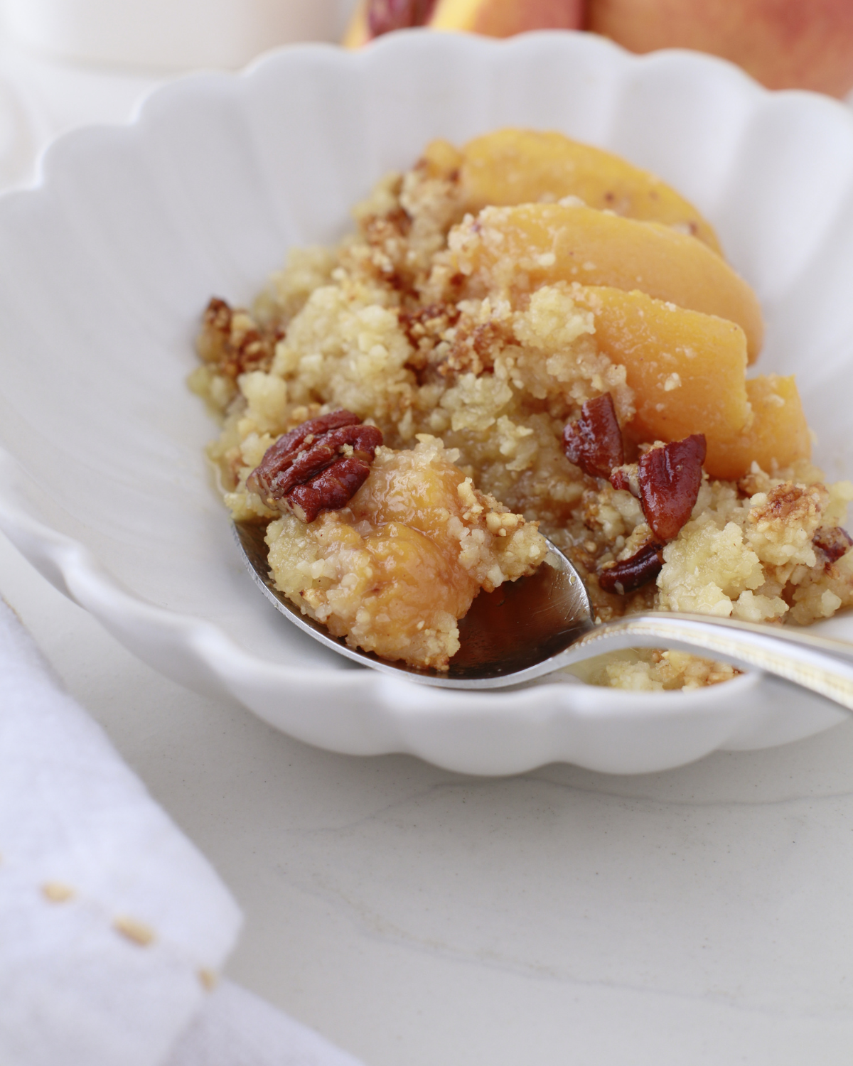 This Low-carb Peach cobbler recipe holds a special place in my heart, as it takes me back to family gatherings where we would enjoy warm peach cobbler topped with ice cream. Whether you’re celebrating a special occasion or just craving a sweet treat, this peach cobbler is perfect for sharing with loved ones.